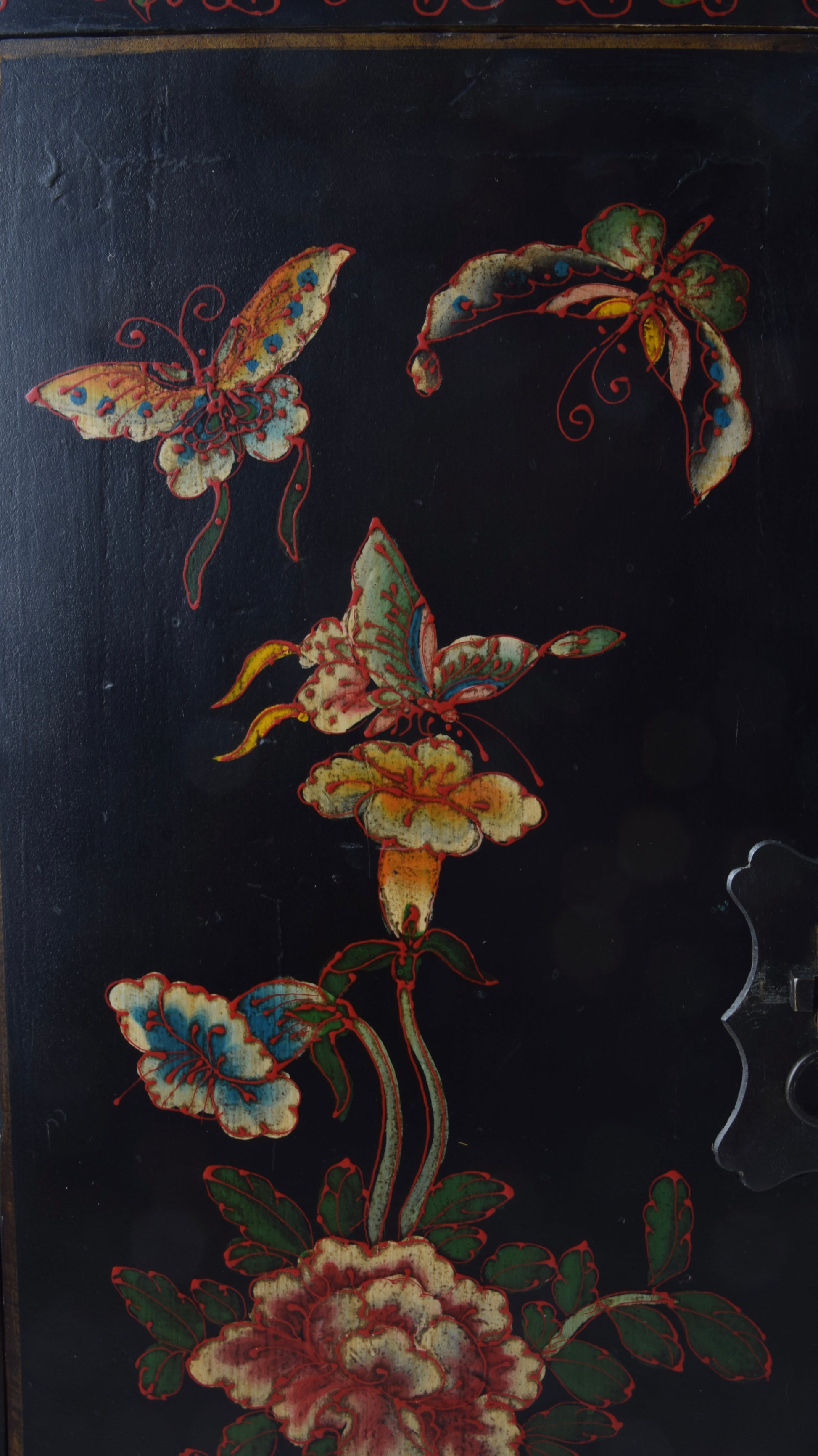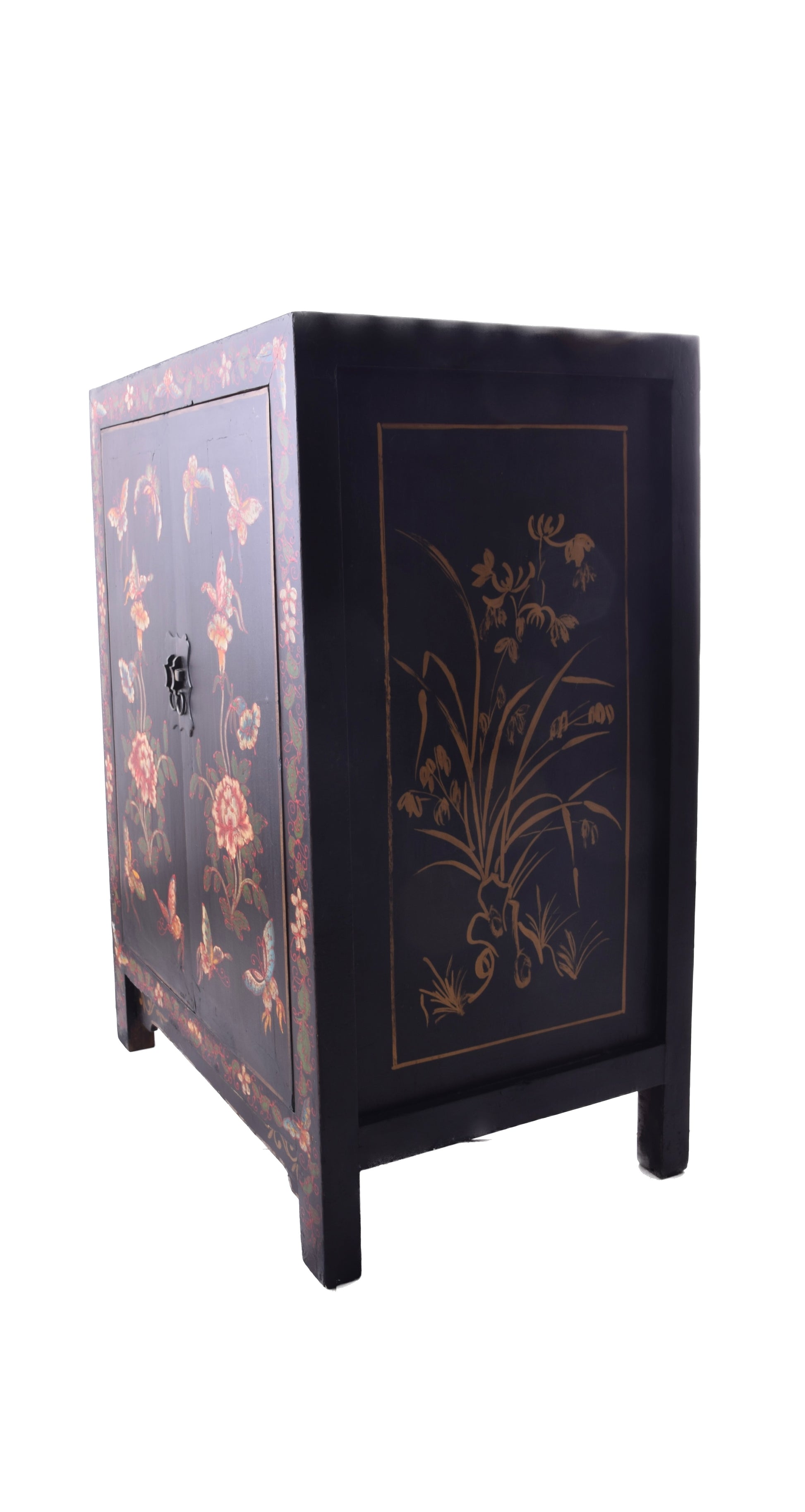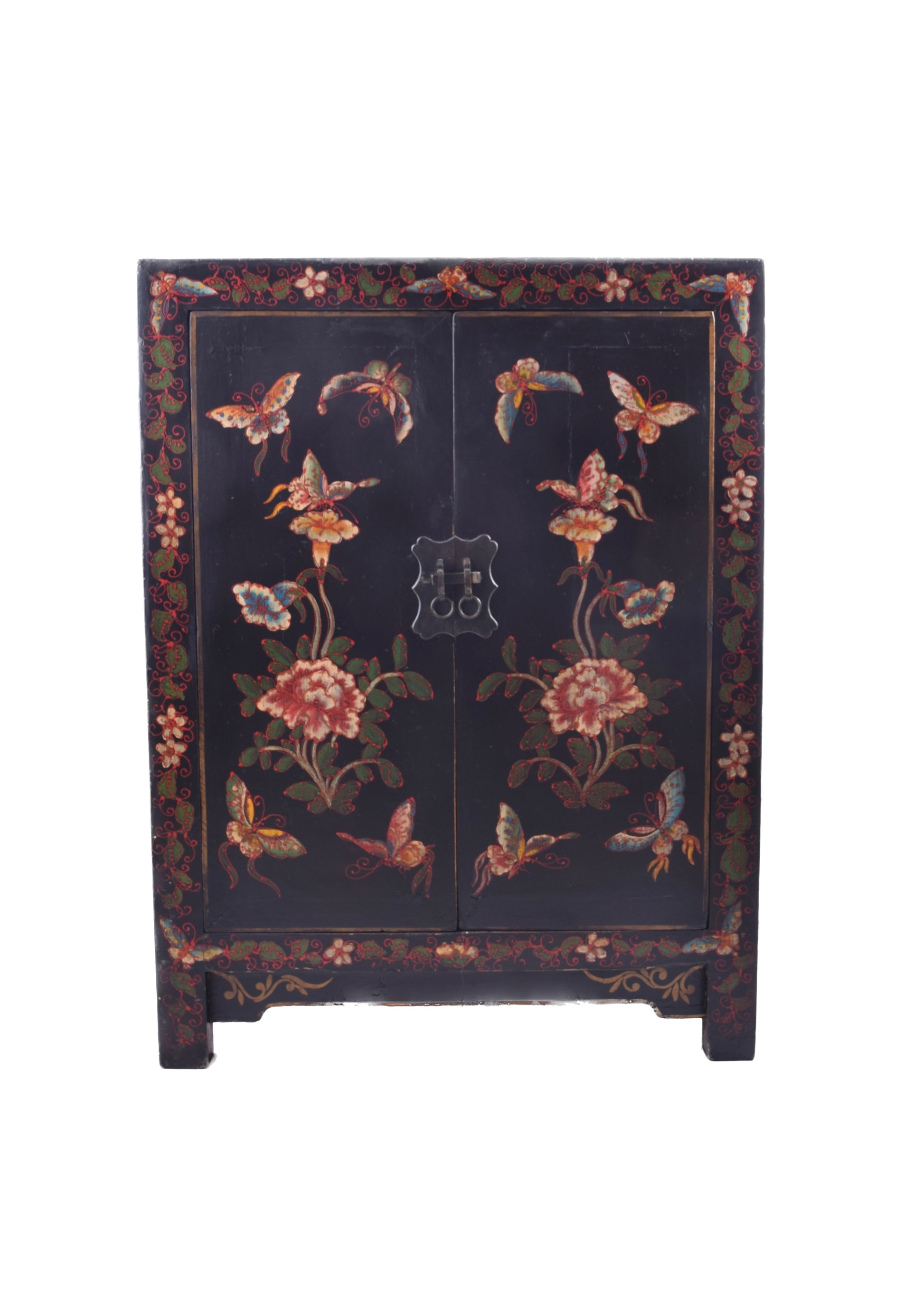 Chińska Komoda malowana w motyle i kwiaty czarna 80x60x40cm