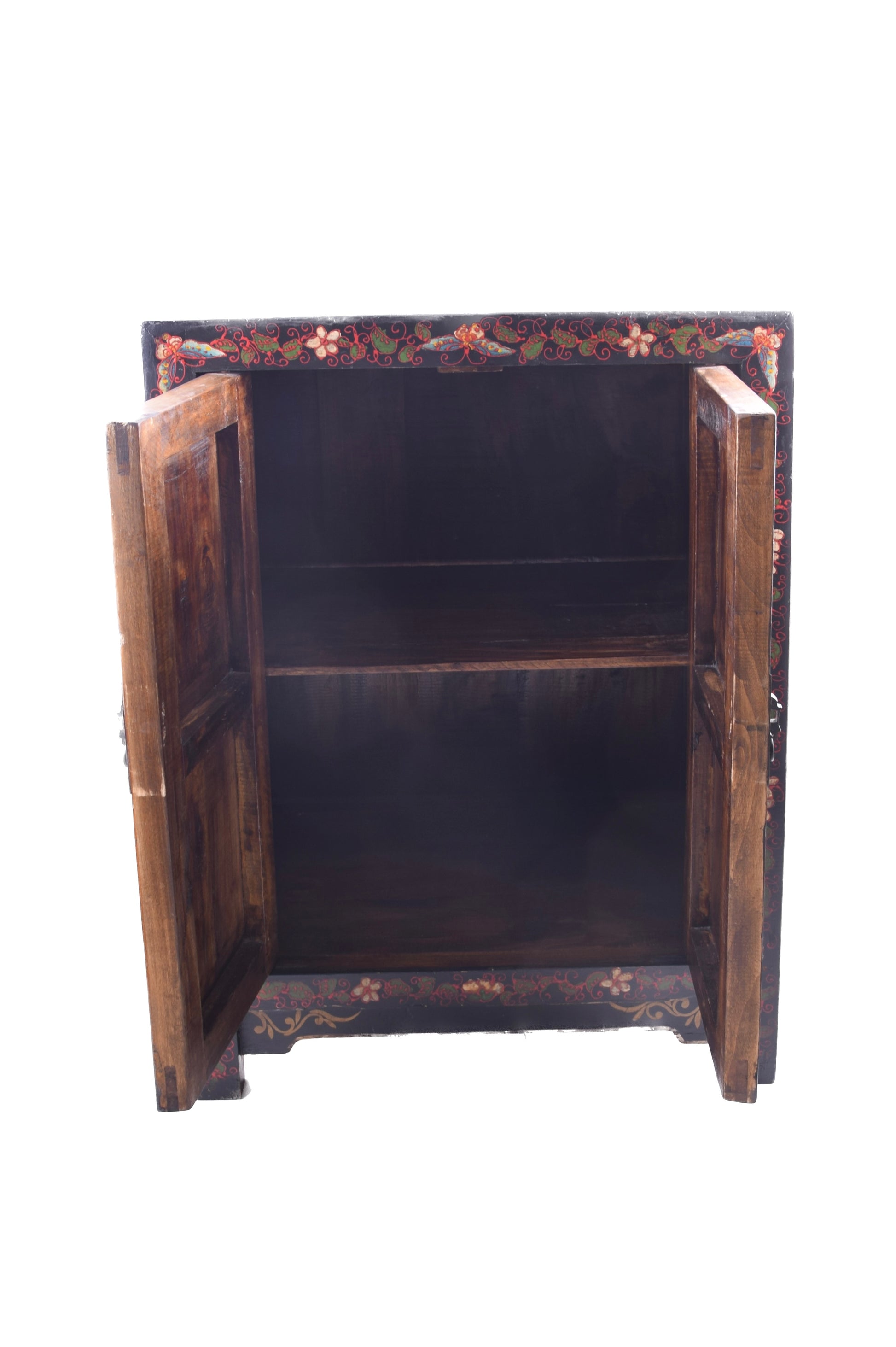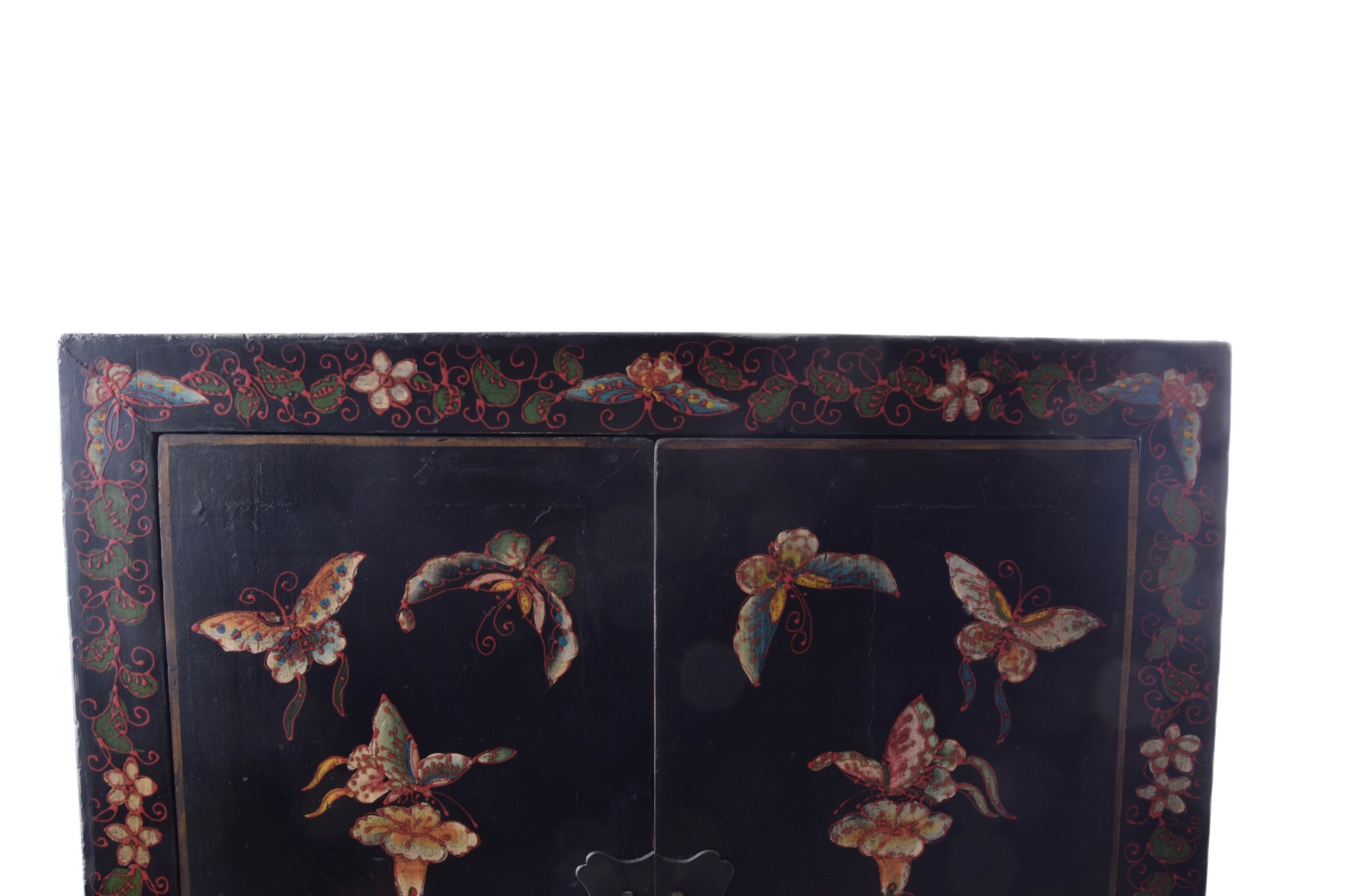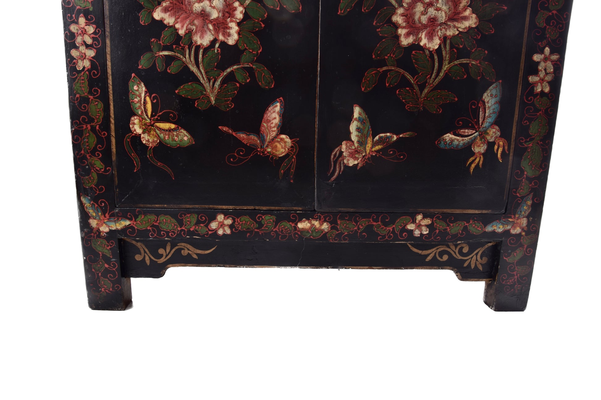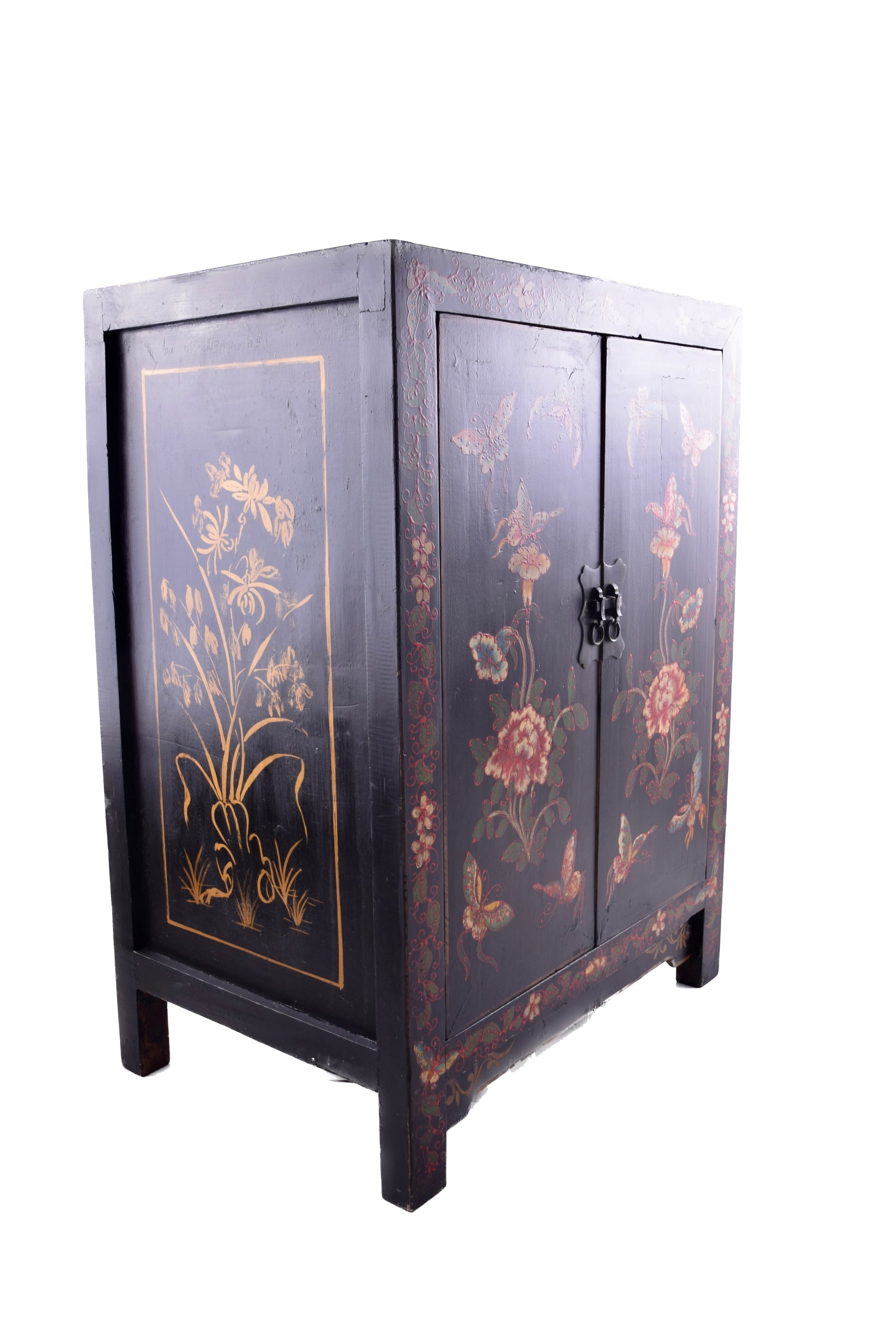 Chińska Komoda malowana w motyle i kwiaty czarna 80x60x40cm