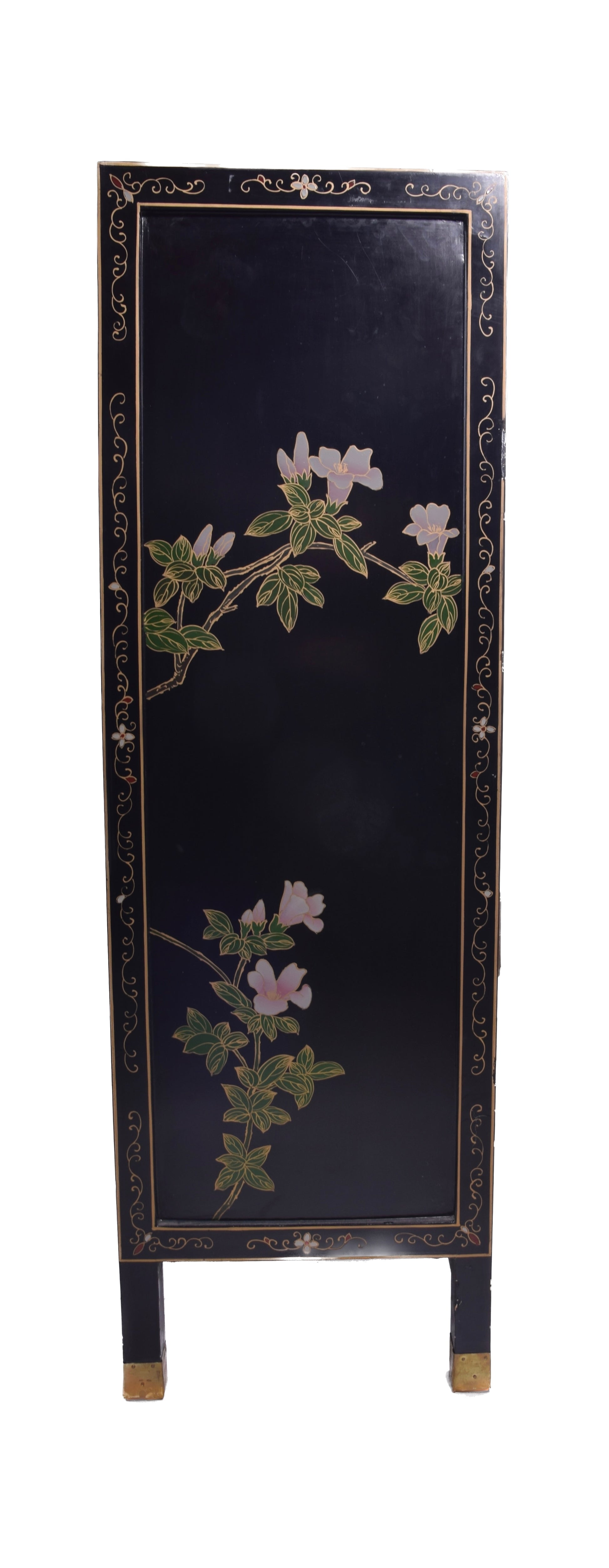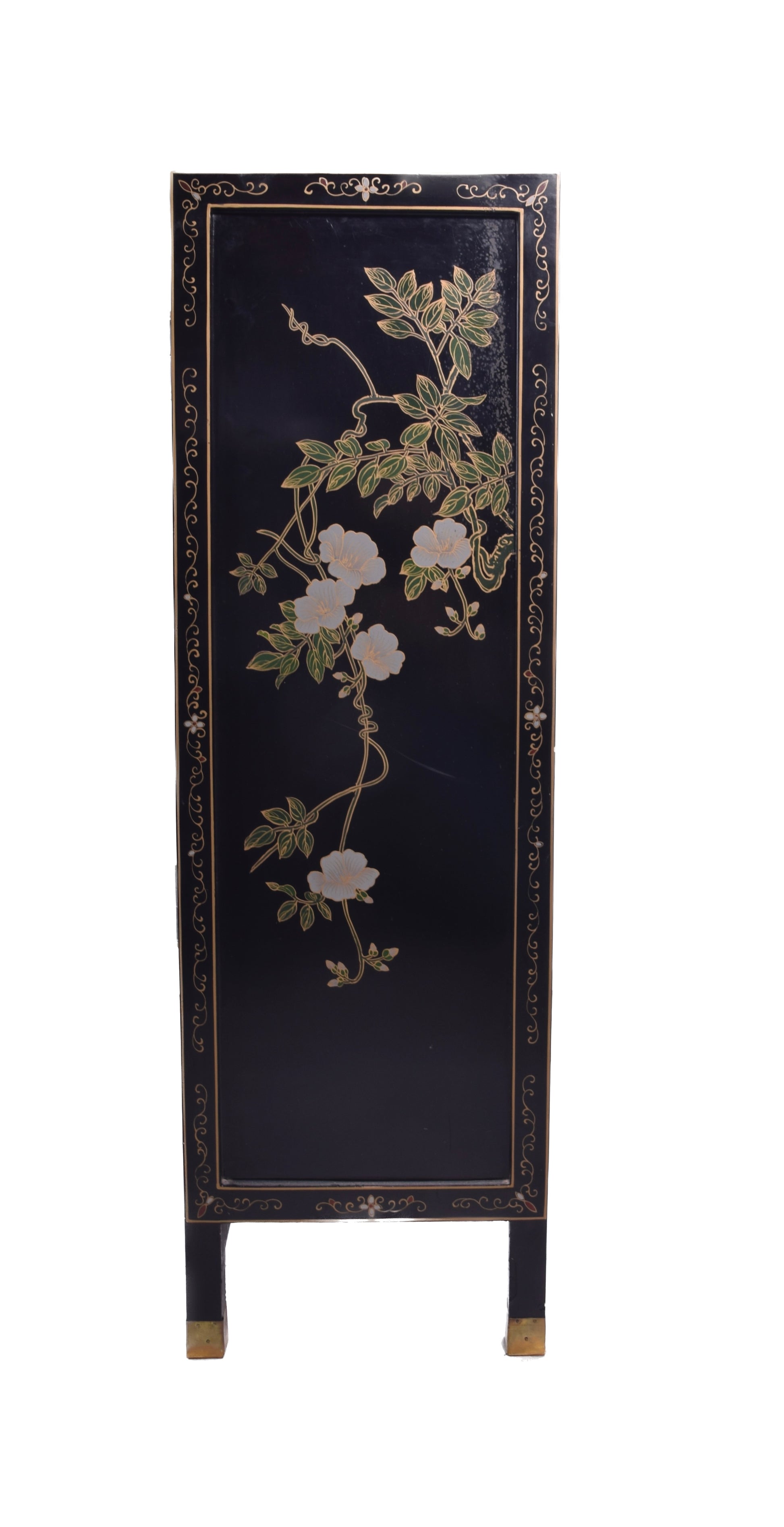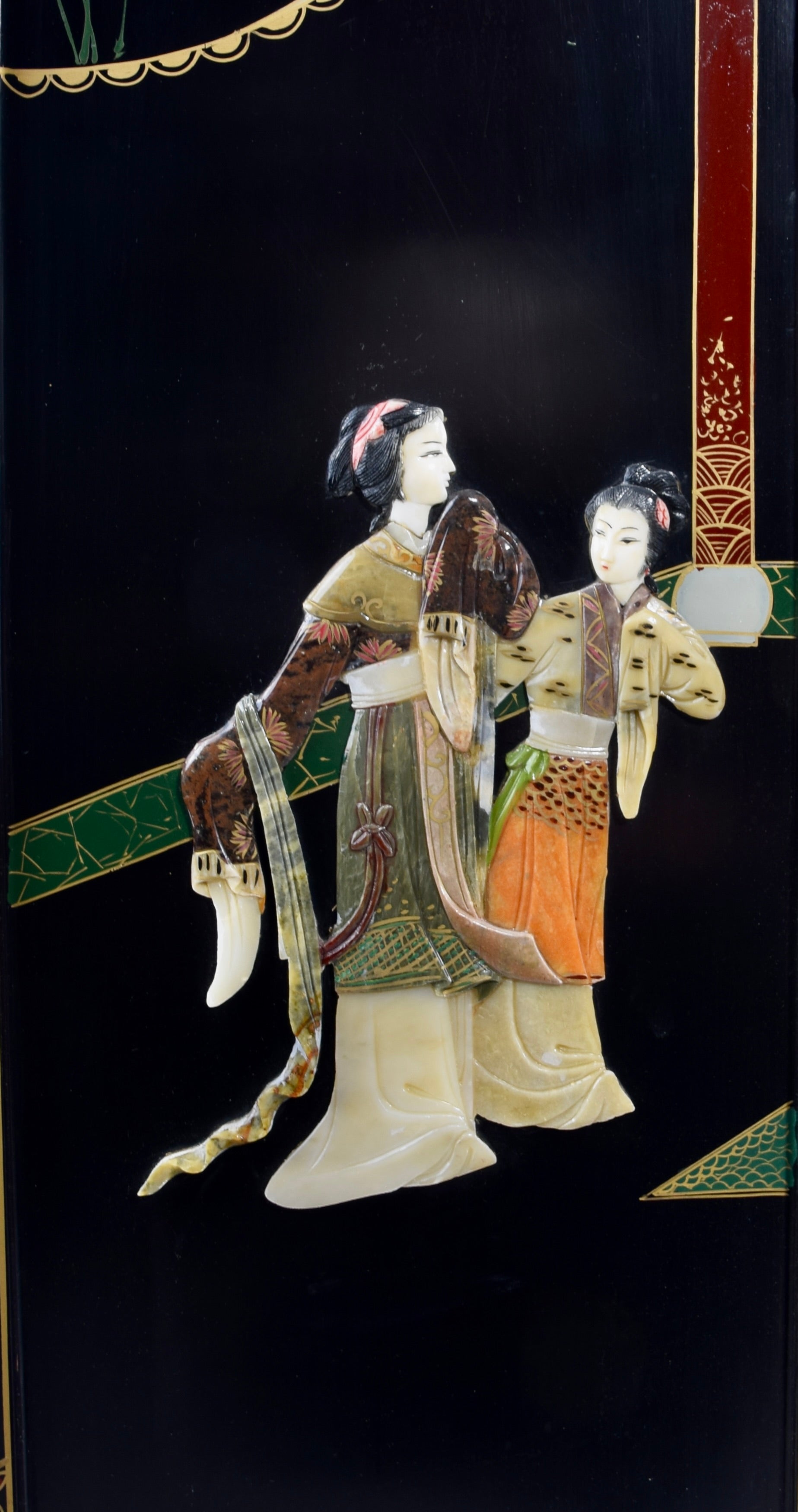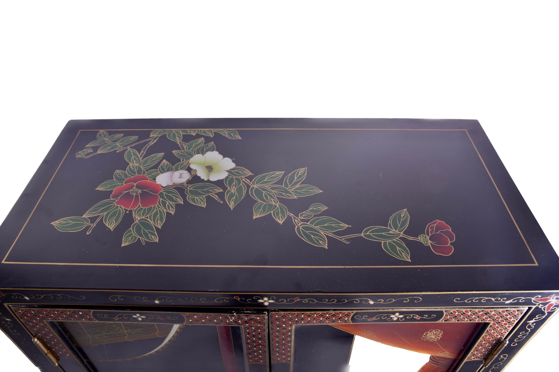 Chińska szafka lakierowana z intarsją, ręcznie zdobiona, lata 70.–80.