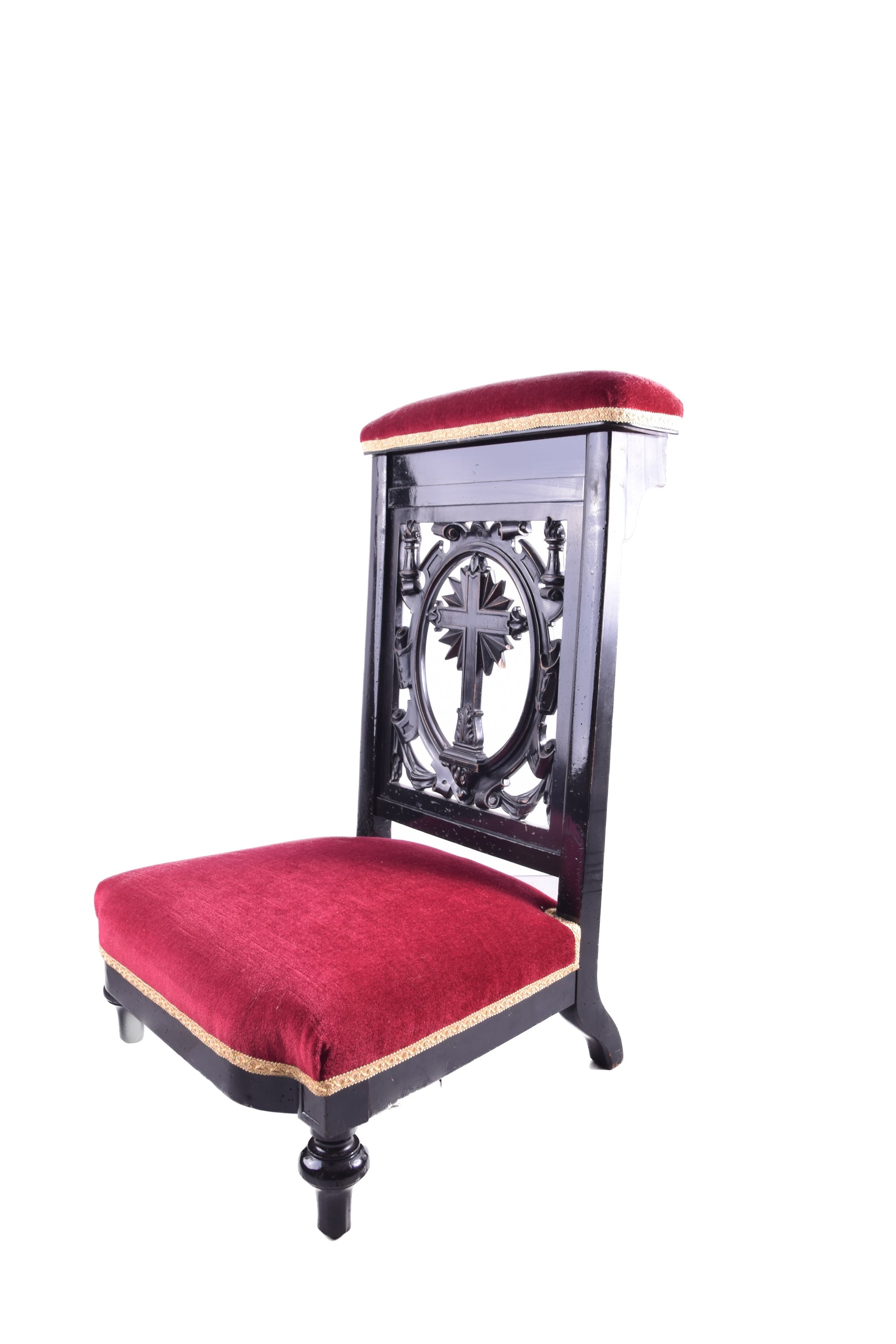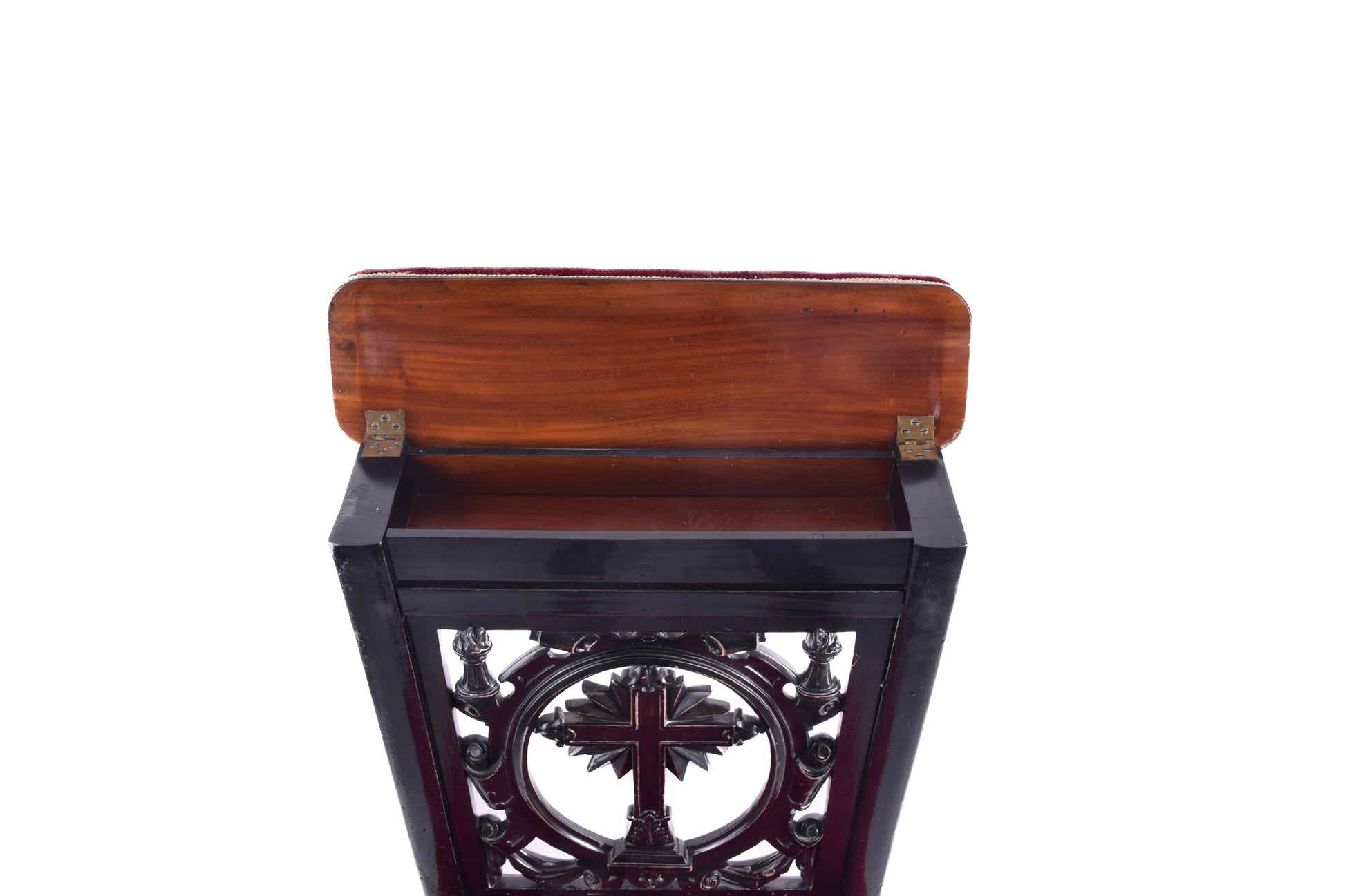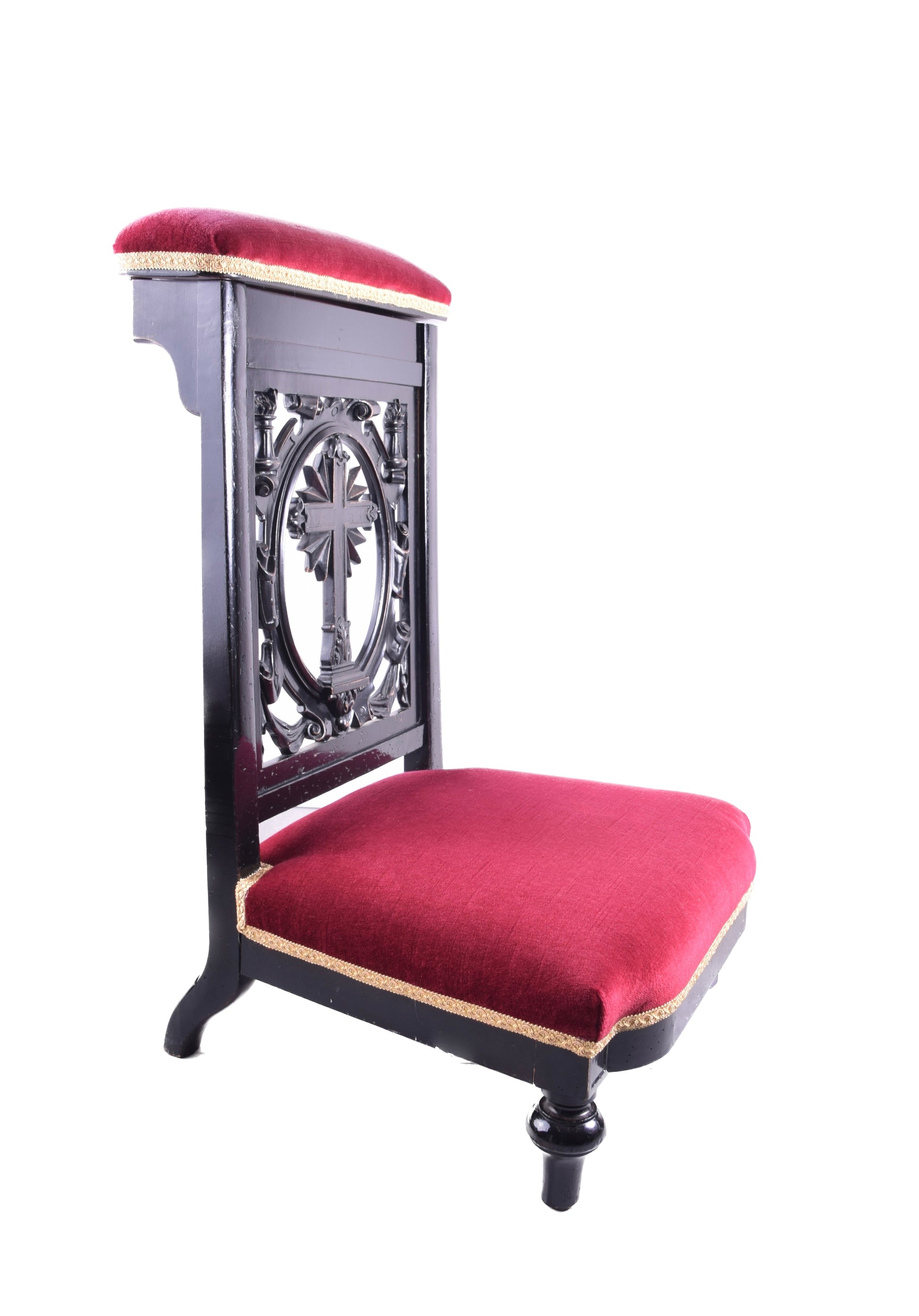 Klęcznik klasycystyczny z motywem krzyża czarno bordowy 90x57x52x25 cm