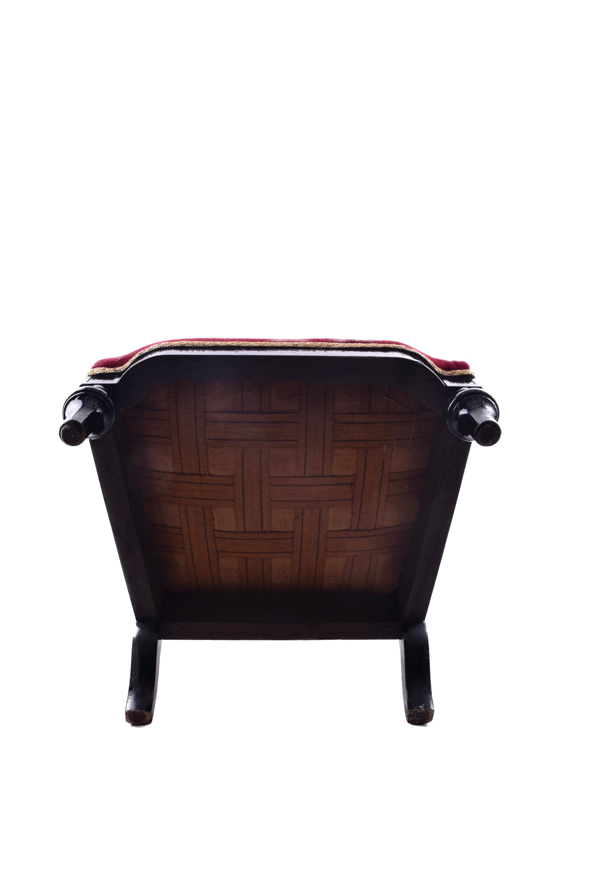 - Tapicerowane siedzisko i podłokietnik w bordowym welurze / aksamicie
