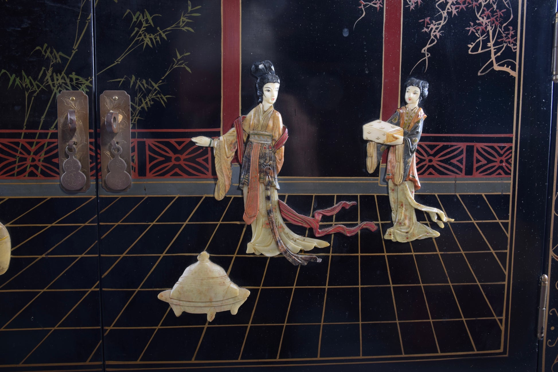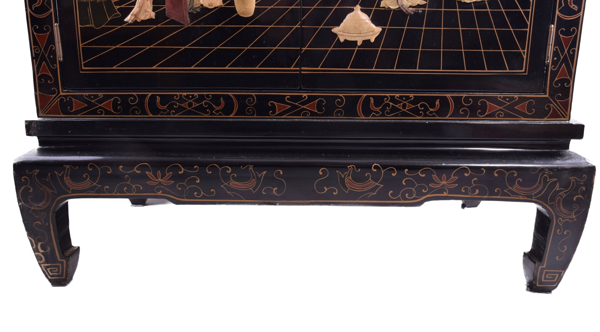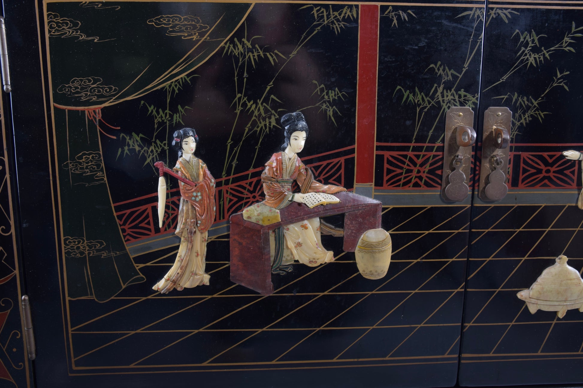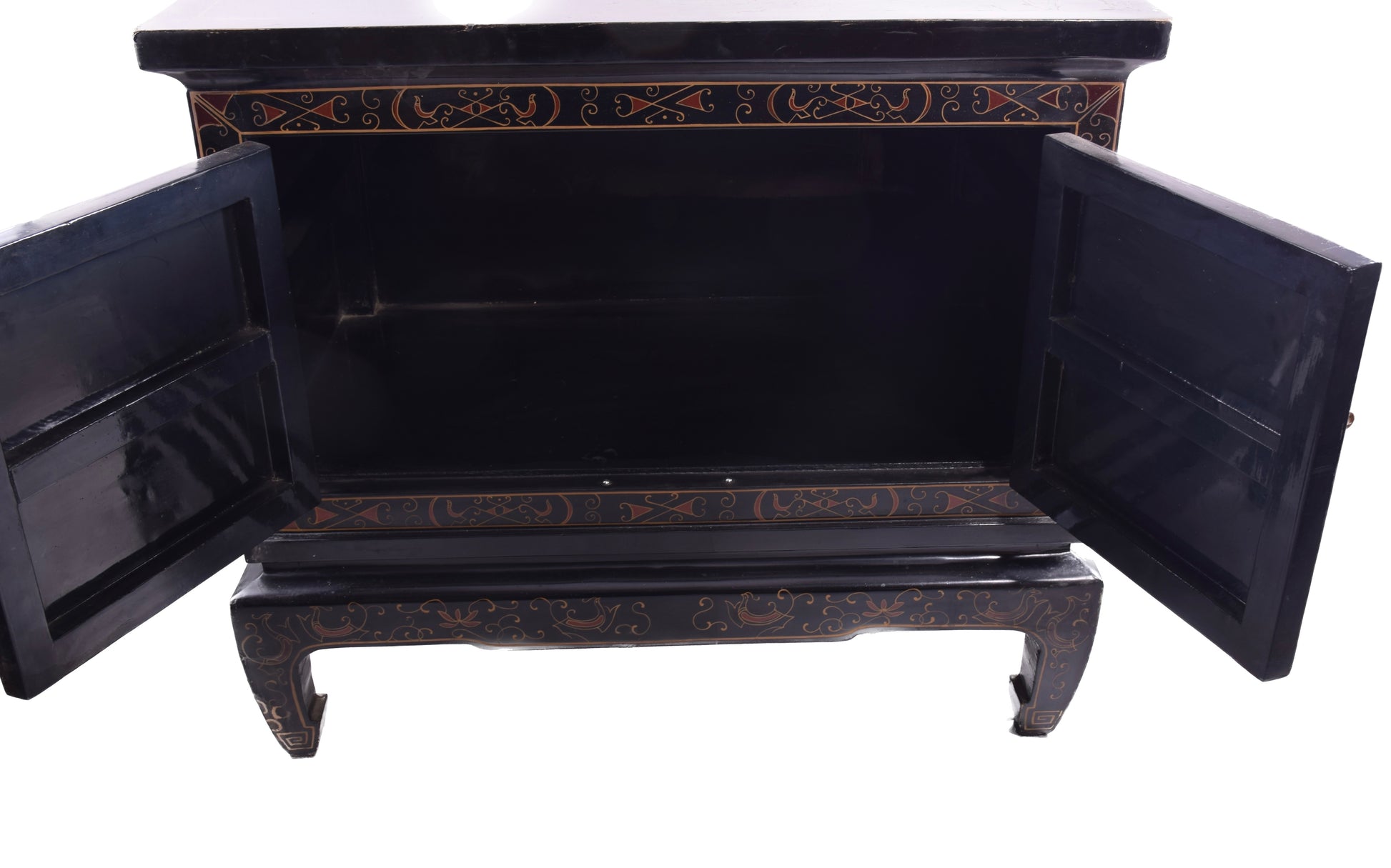 Komoda orientalna, lakierowana z dekoracją figuralną i kwiatową