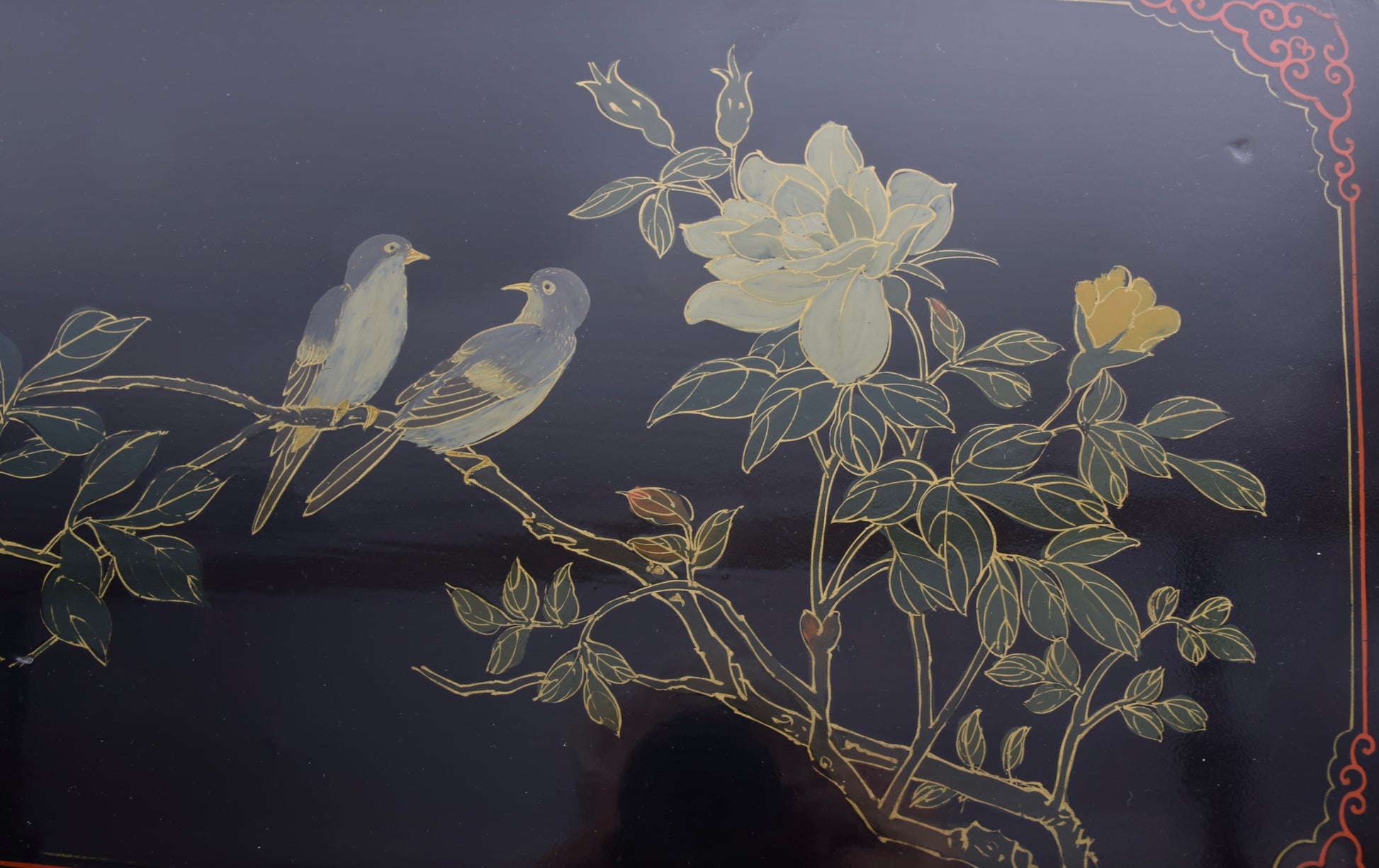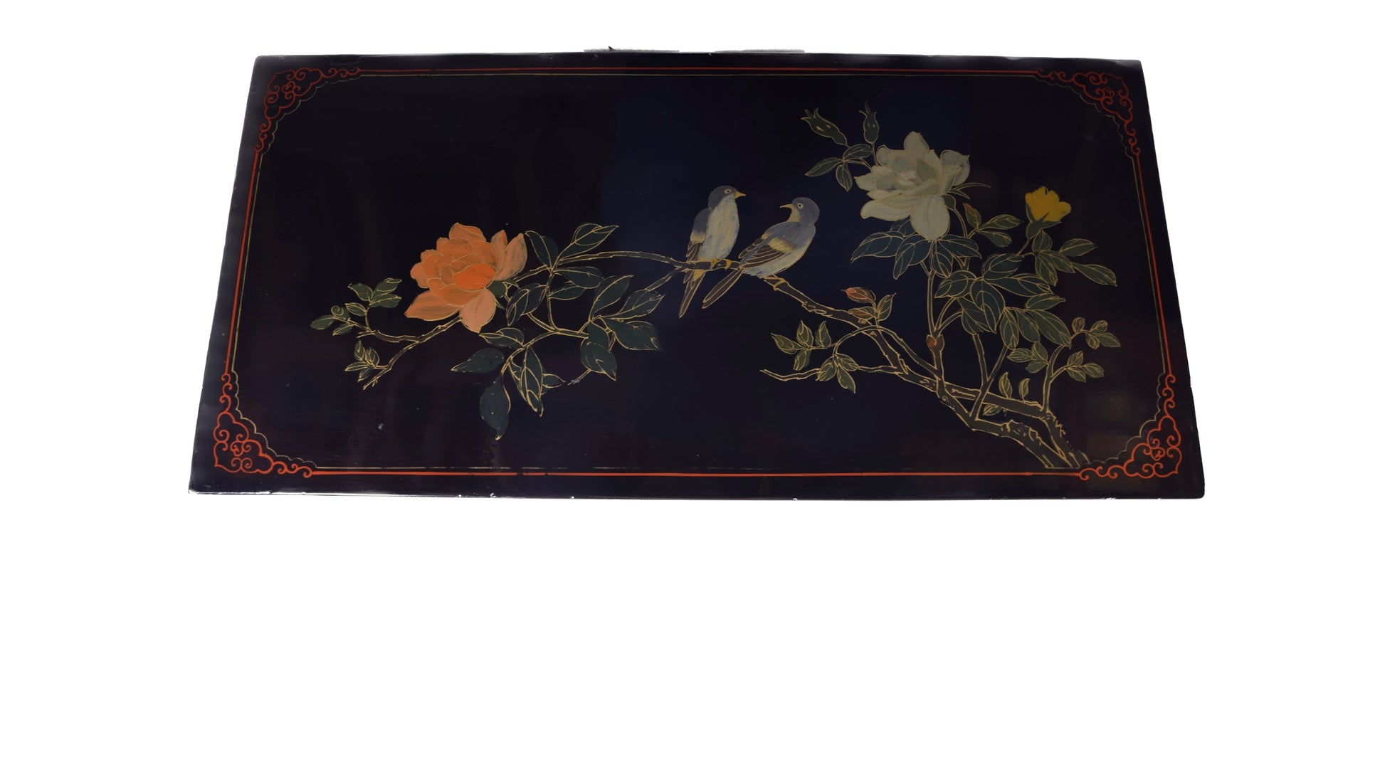 Motywy roślinne i ptasie ukazują harmonijną symbolikę Dalekiego Wschodu: