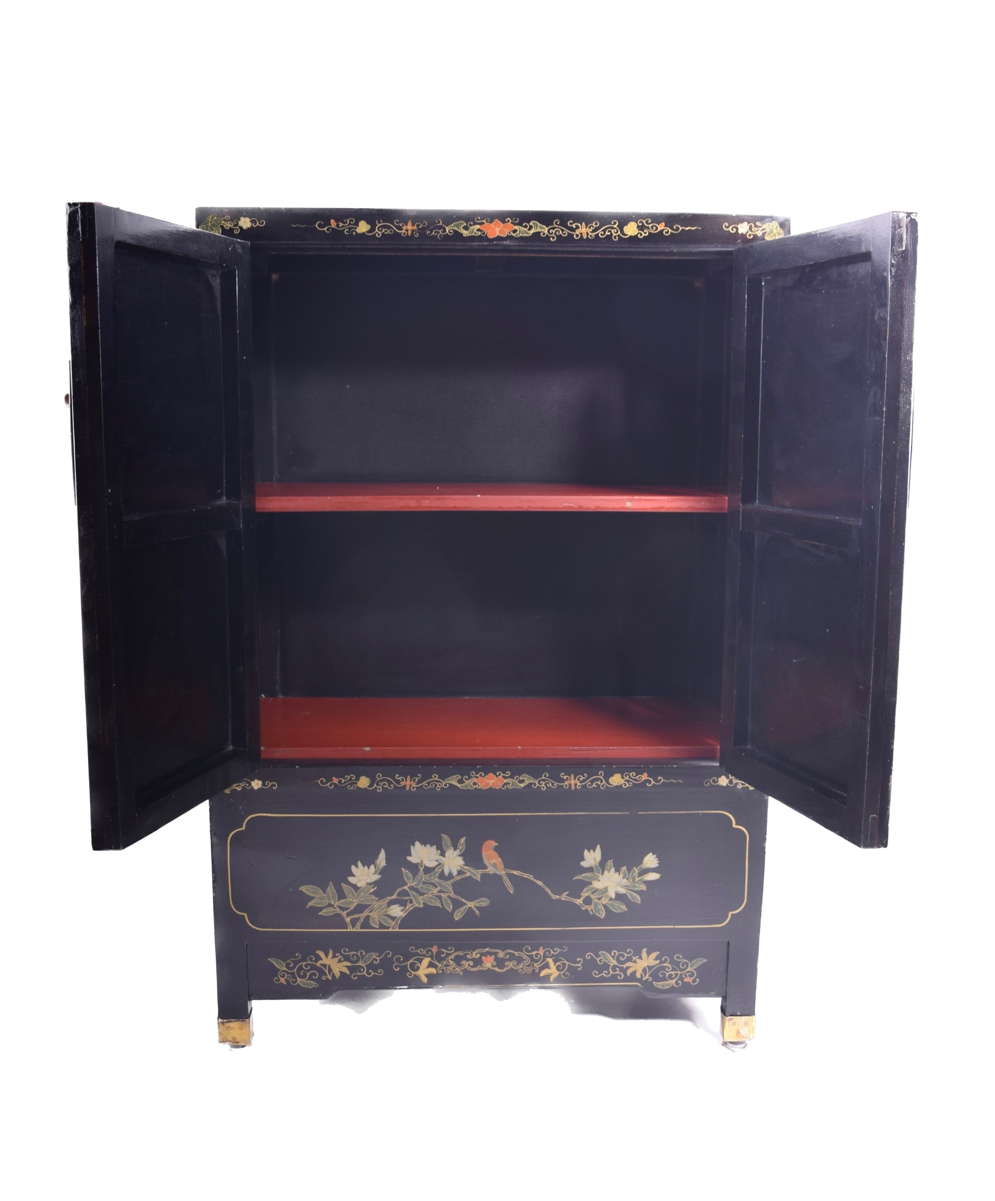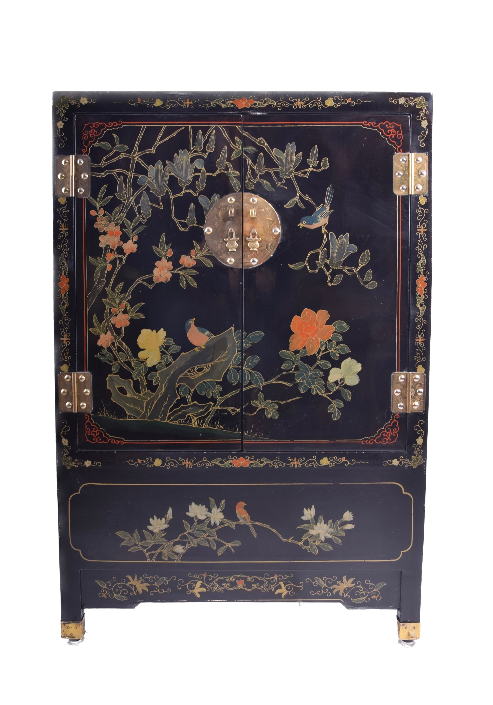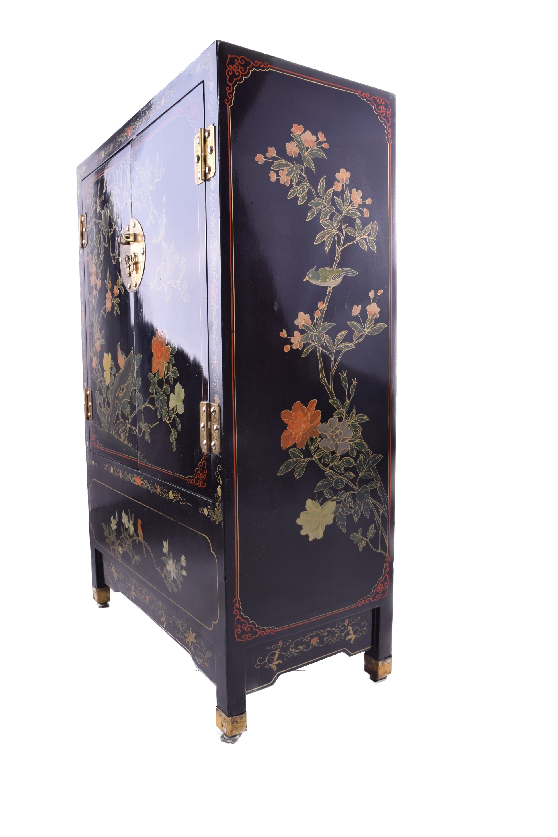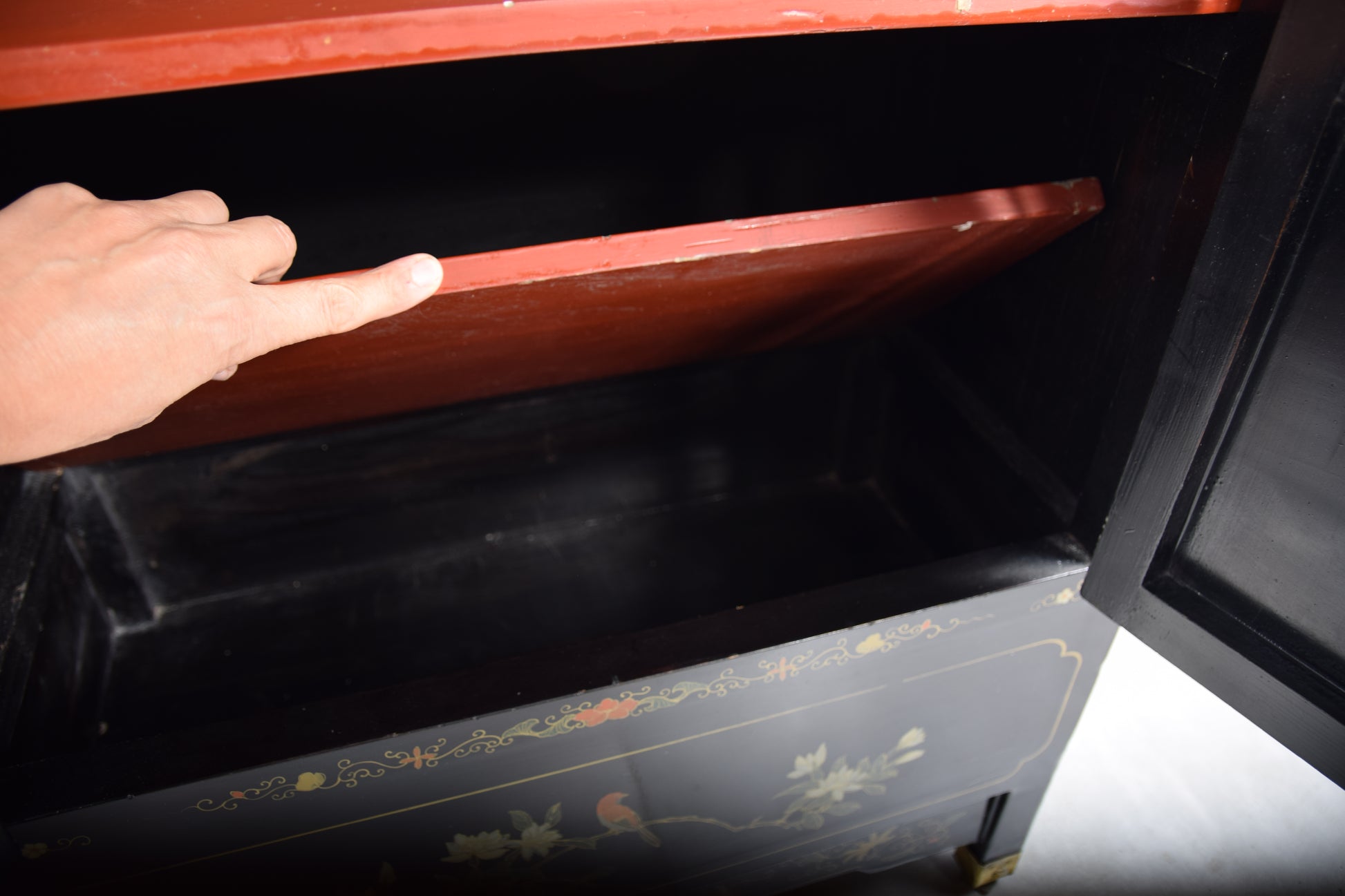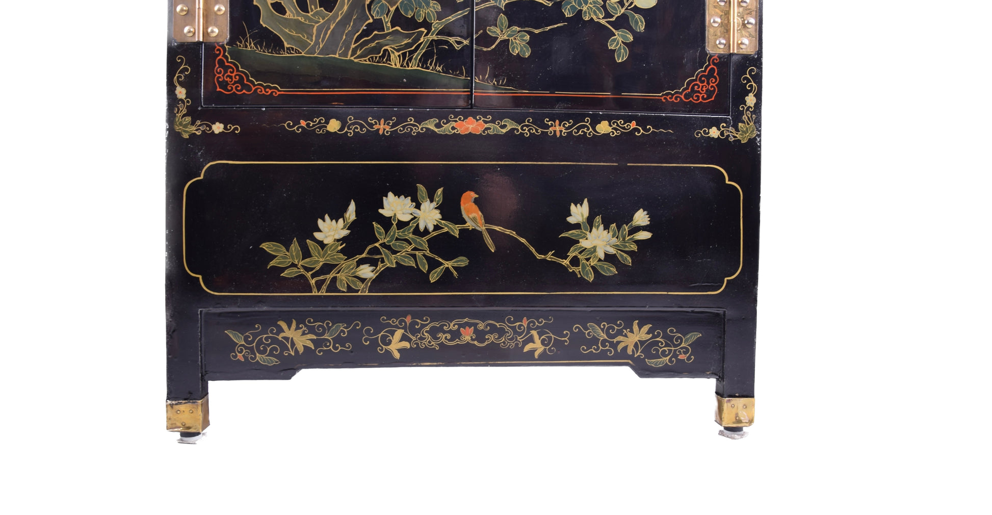 Ta piękna komoda łączy w sobie chińską tradycję zdobniczą z funkcjonalnością, idealnie pasując do wnętrz inspirowanych orientem.
