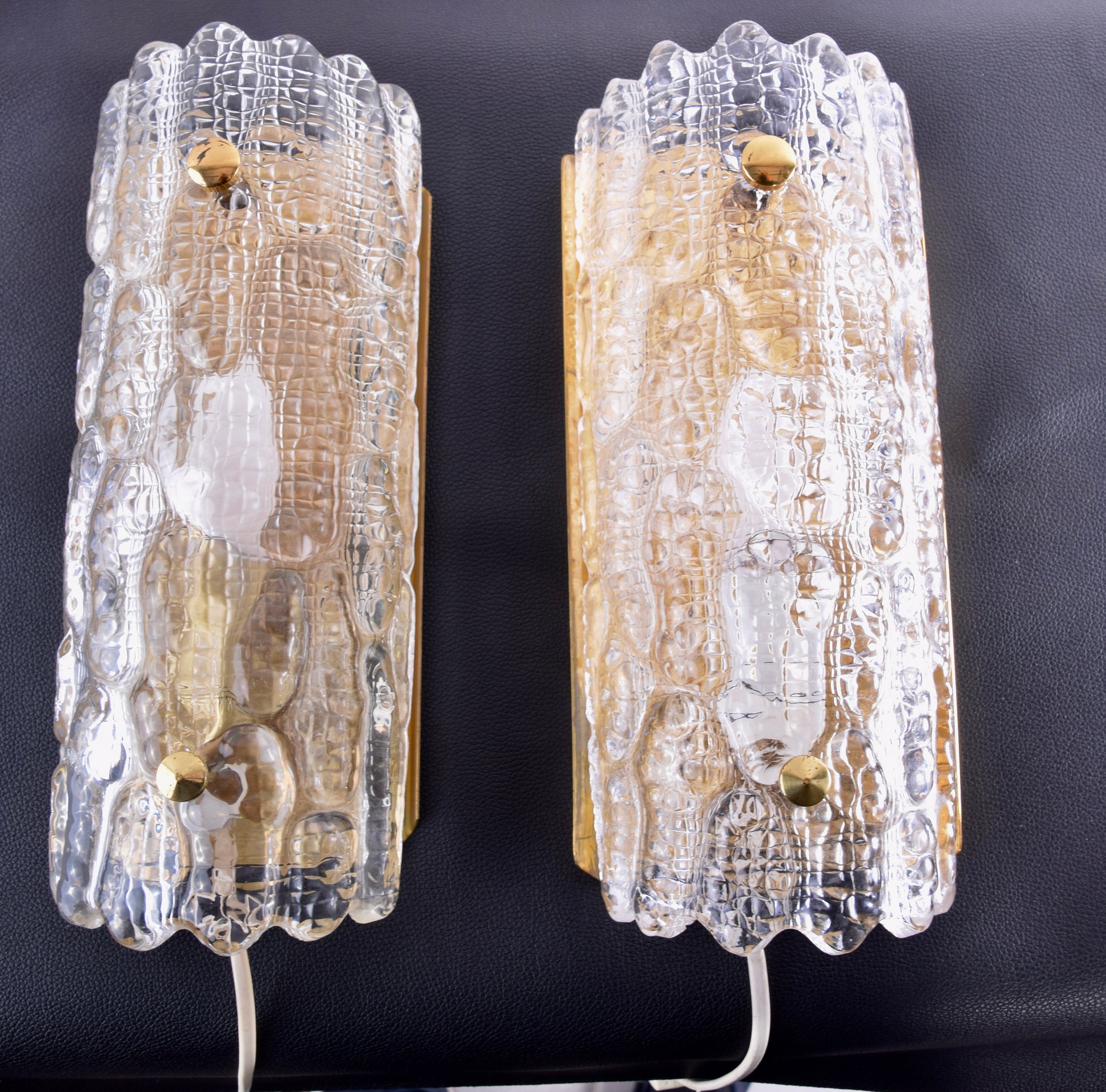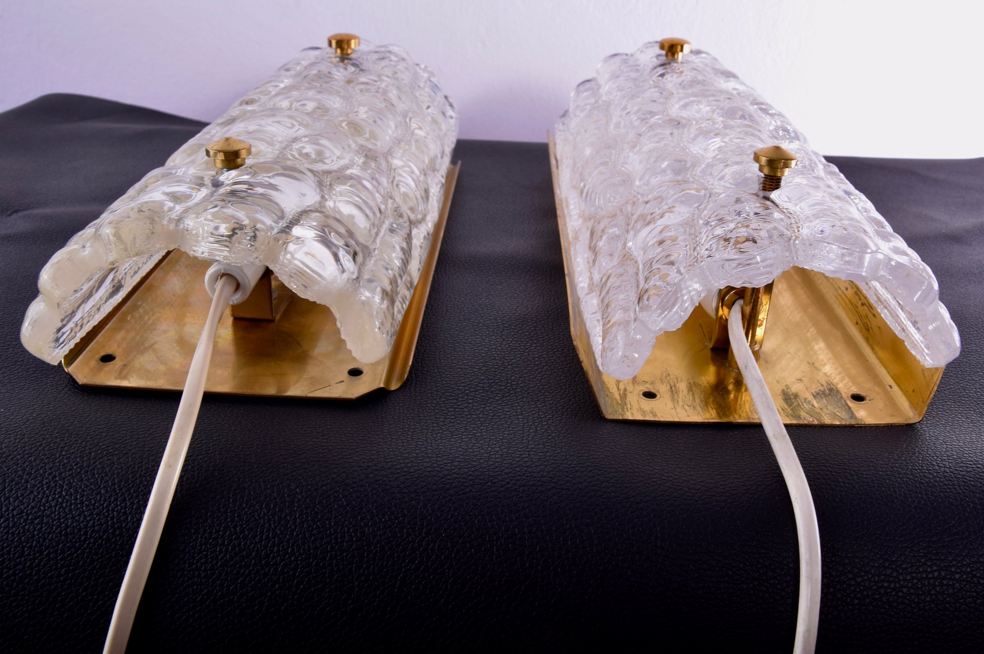 Wyjątkowa para oryginalnych kinkietów Orrefors Sweden, zaprojektowanych przez Carla Fagerlunda w latach 60./70.