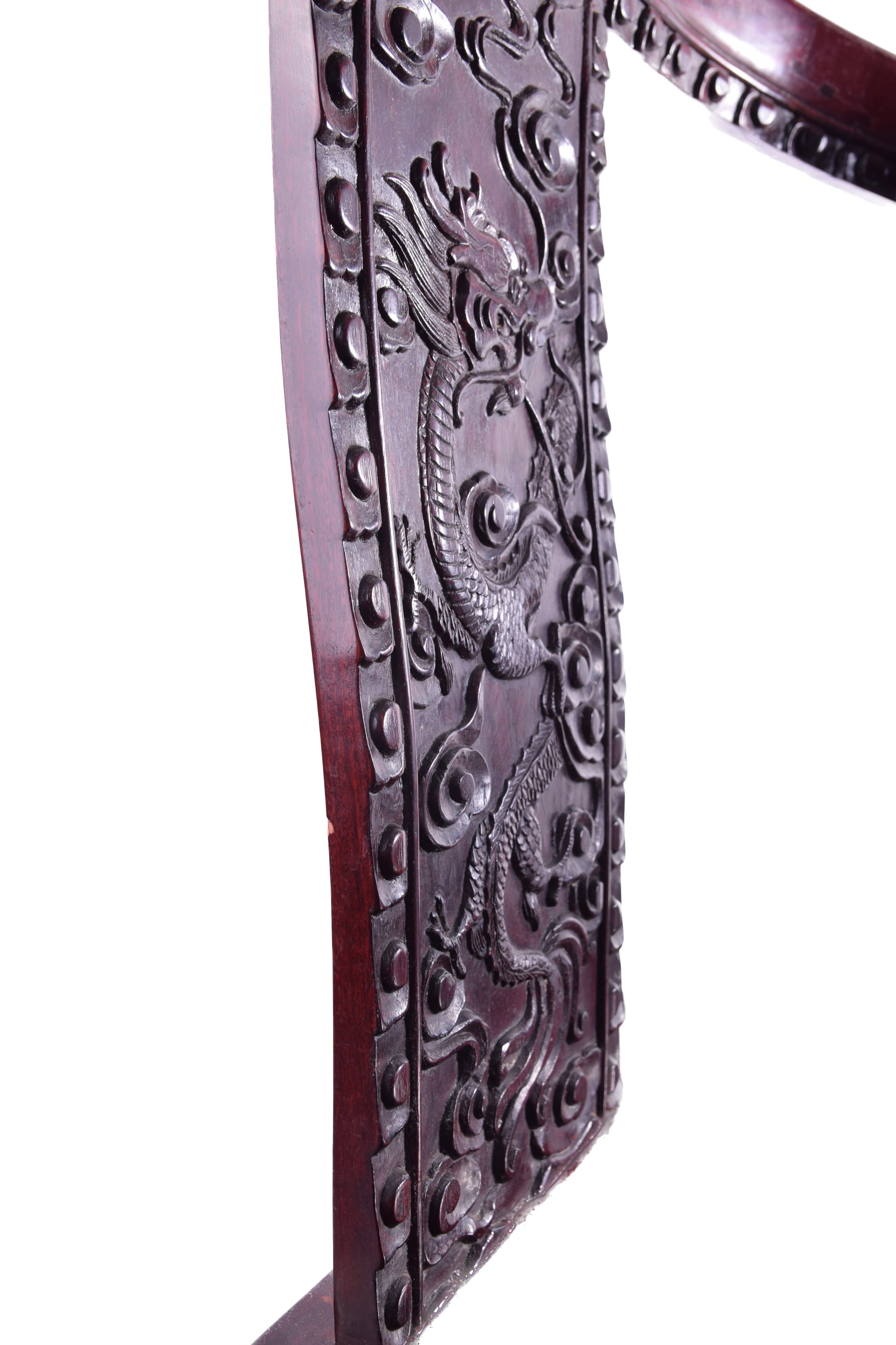 Rzeźbiony fotel chiński z motywem smoków, lata 50. XX w.
