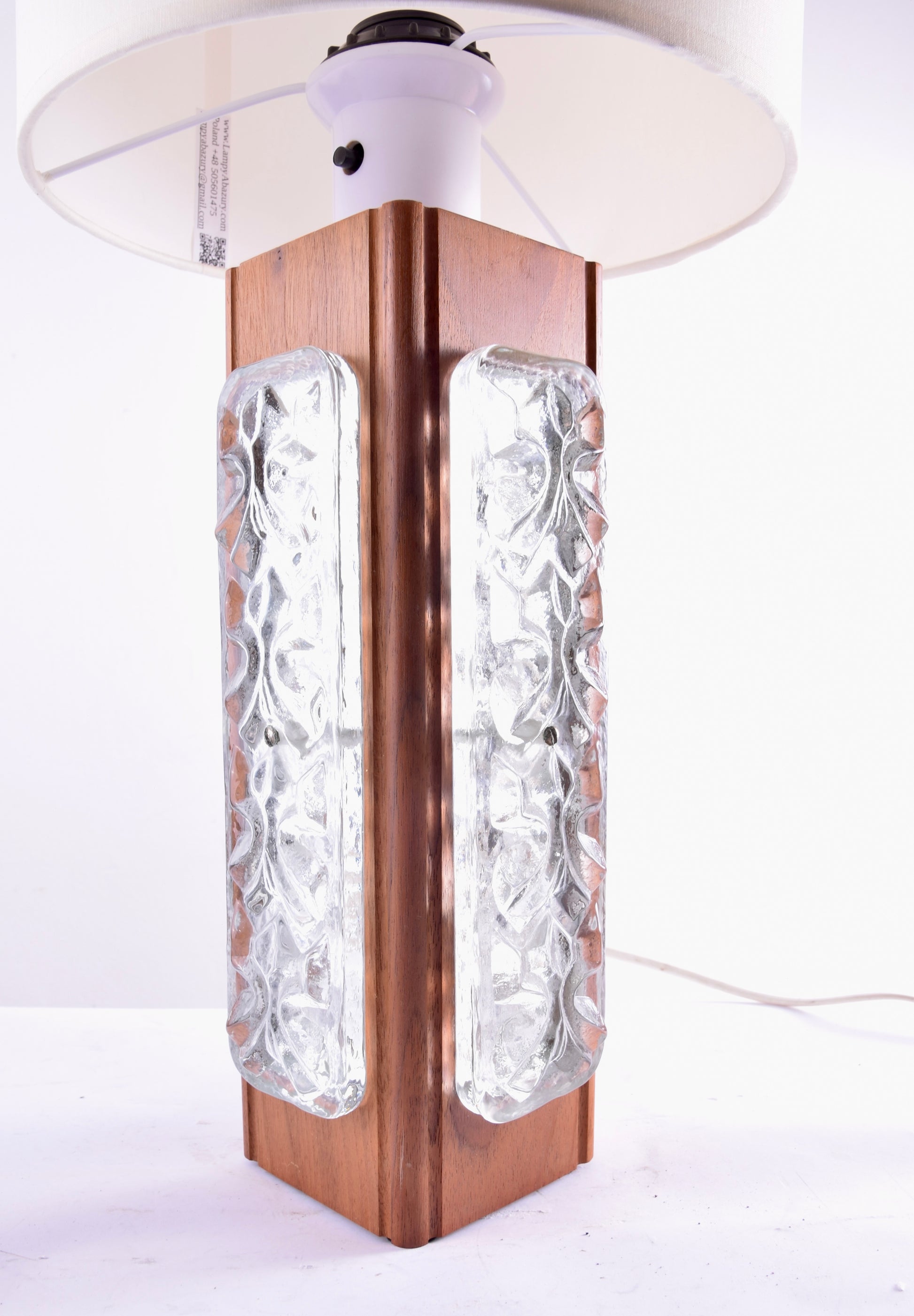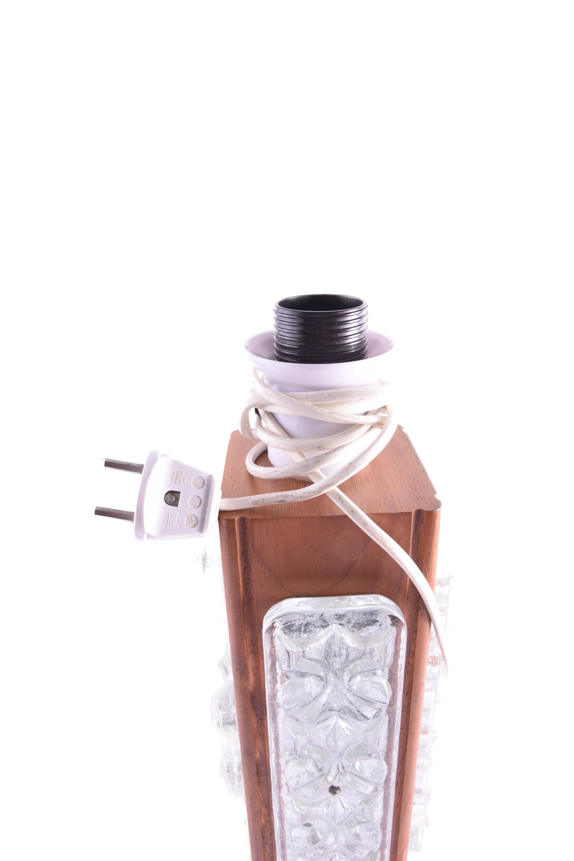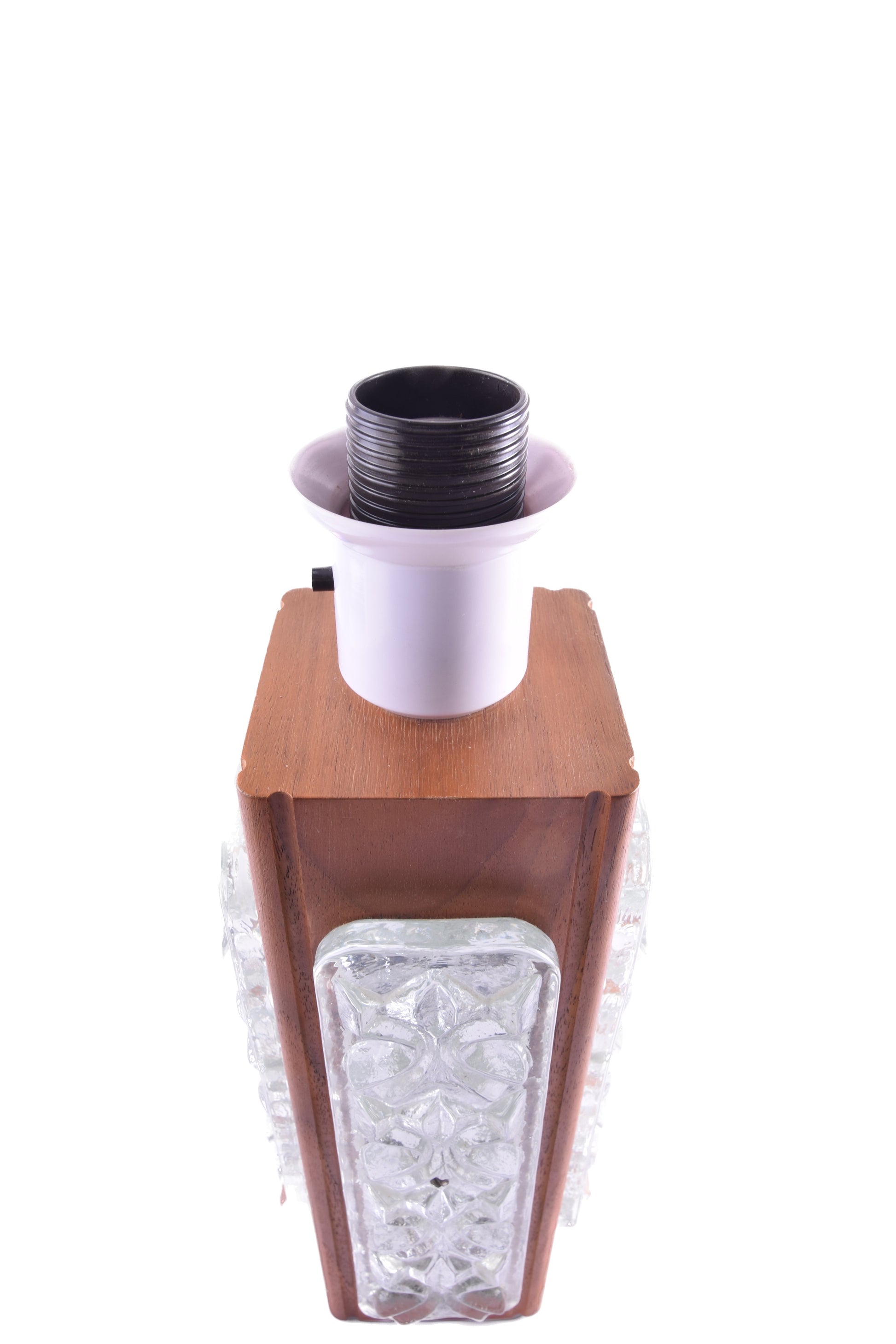 Skandynawska lampa stołowa teak & szkło strukturalne | lata 60/70 | 54 cm