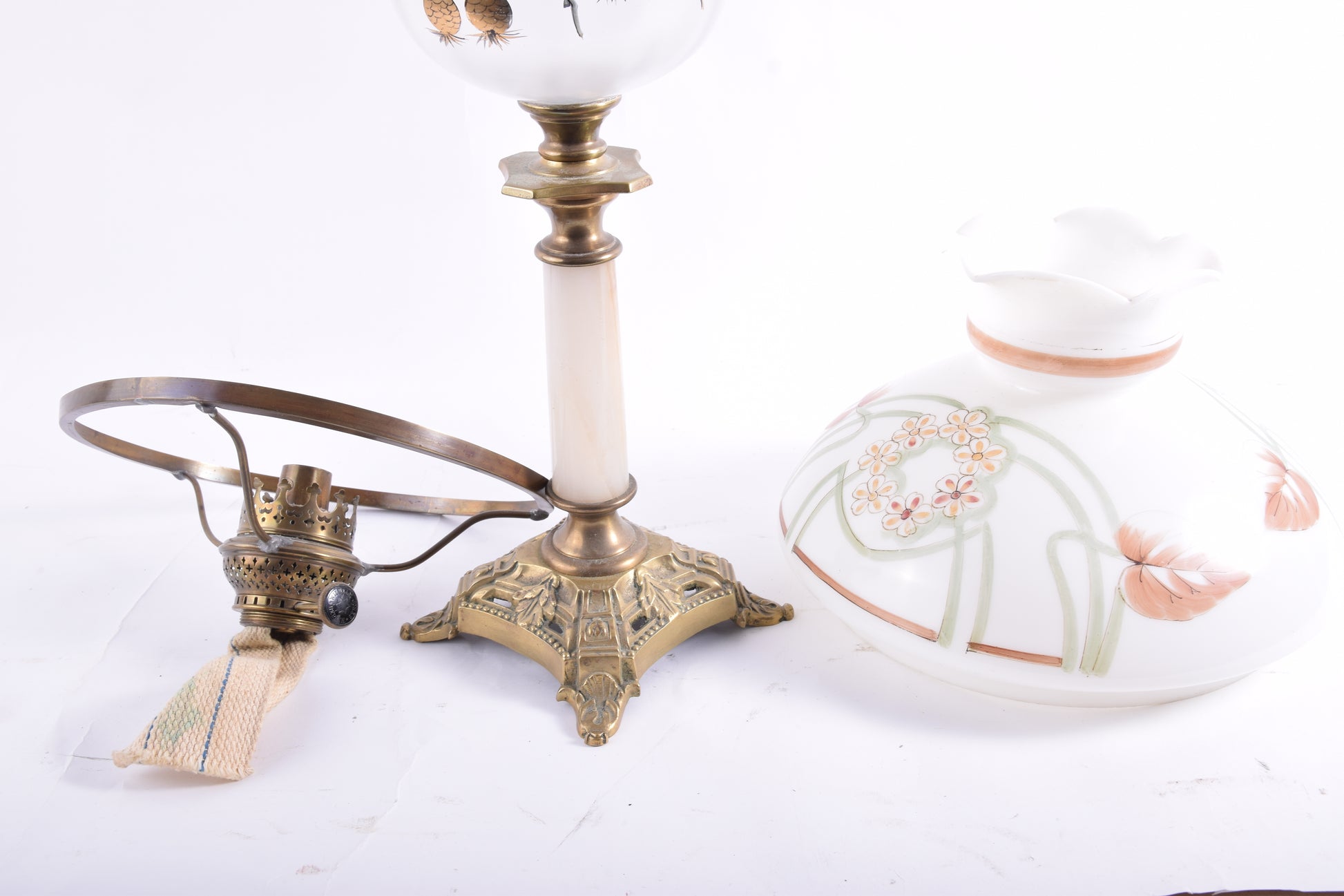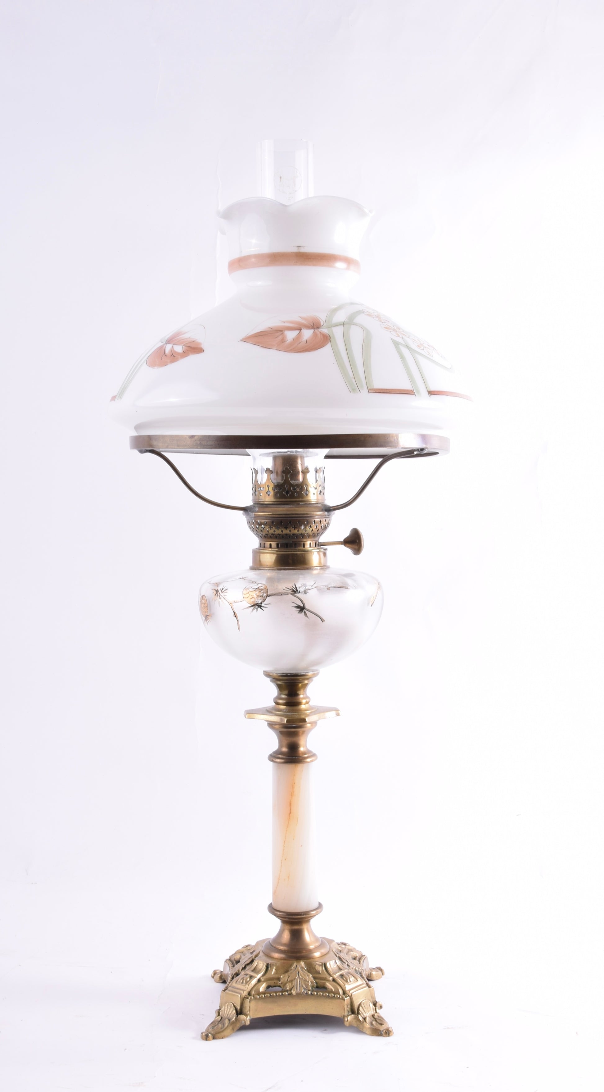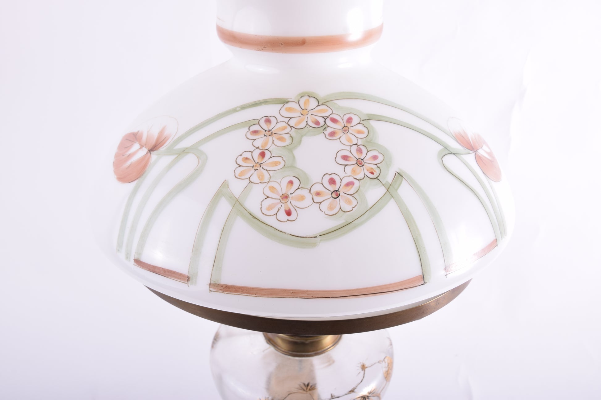 - Klosz i cylinder wykonane z mlecznego szkła z ręcznym malunkiem
