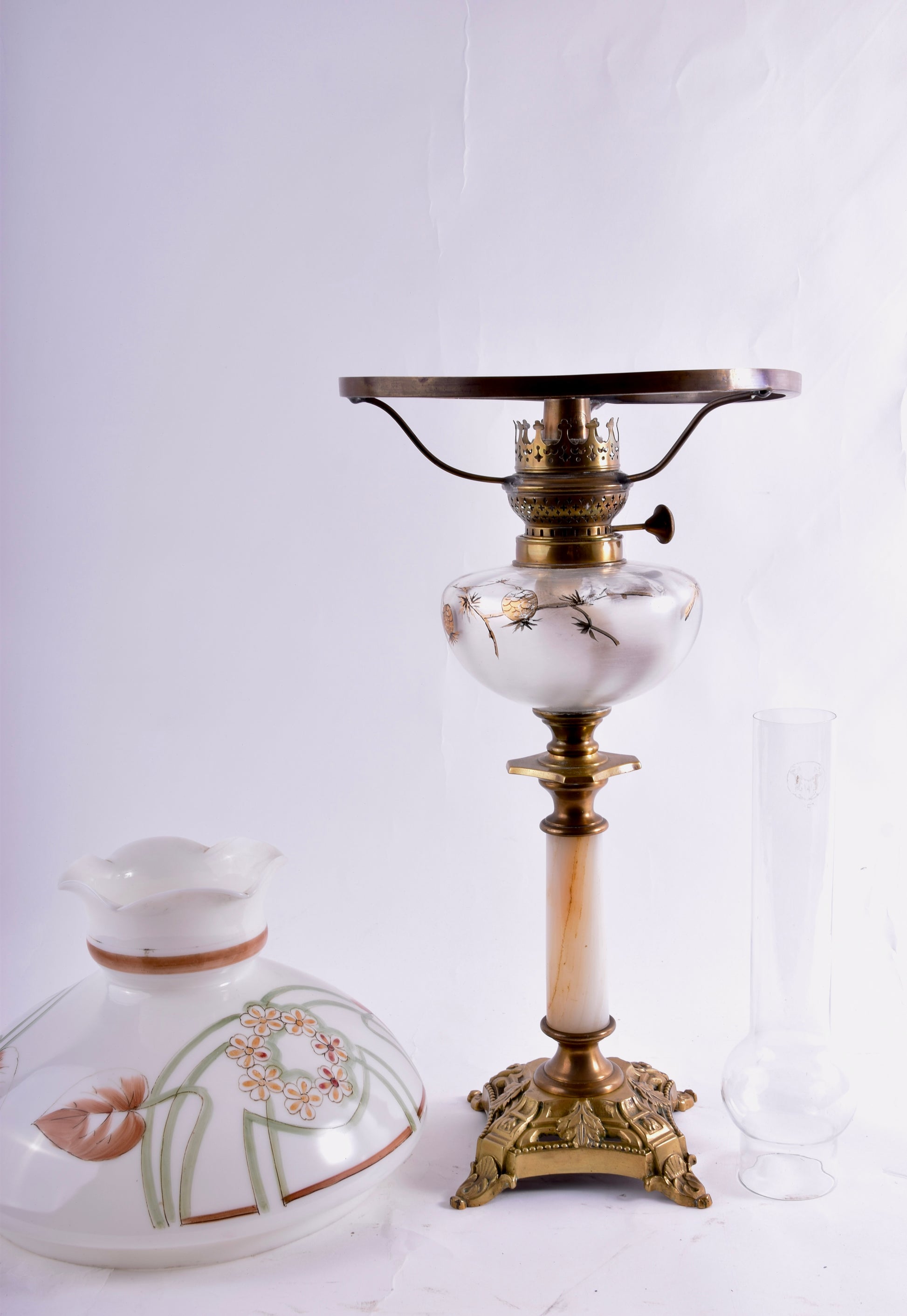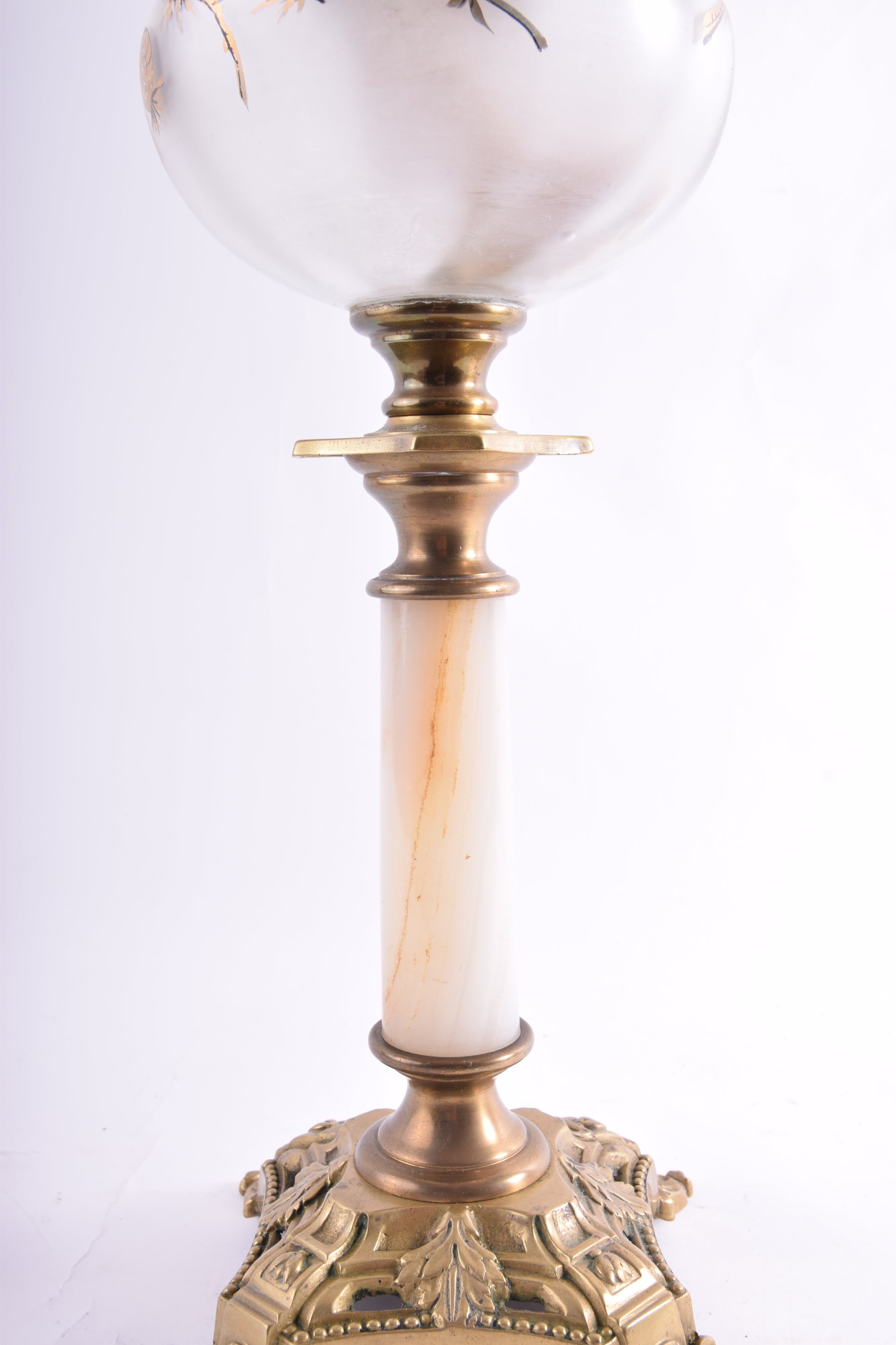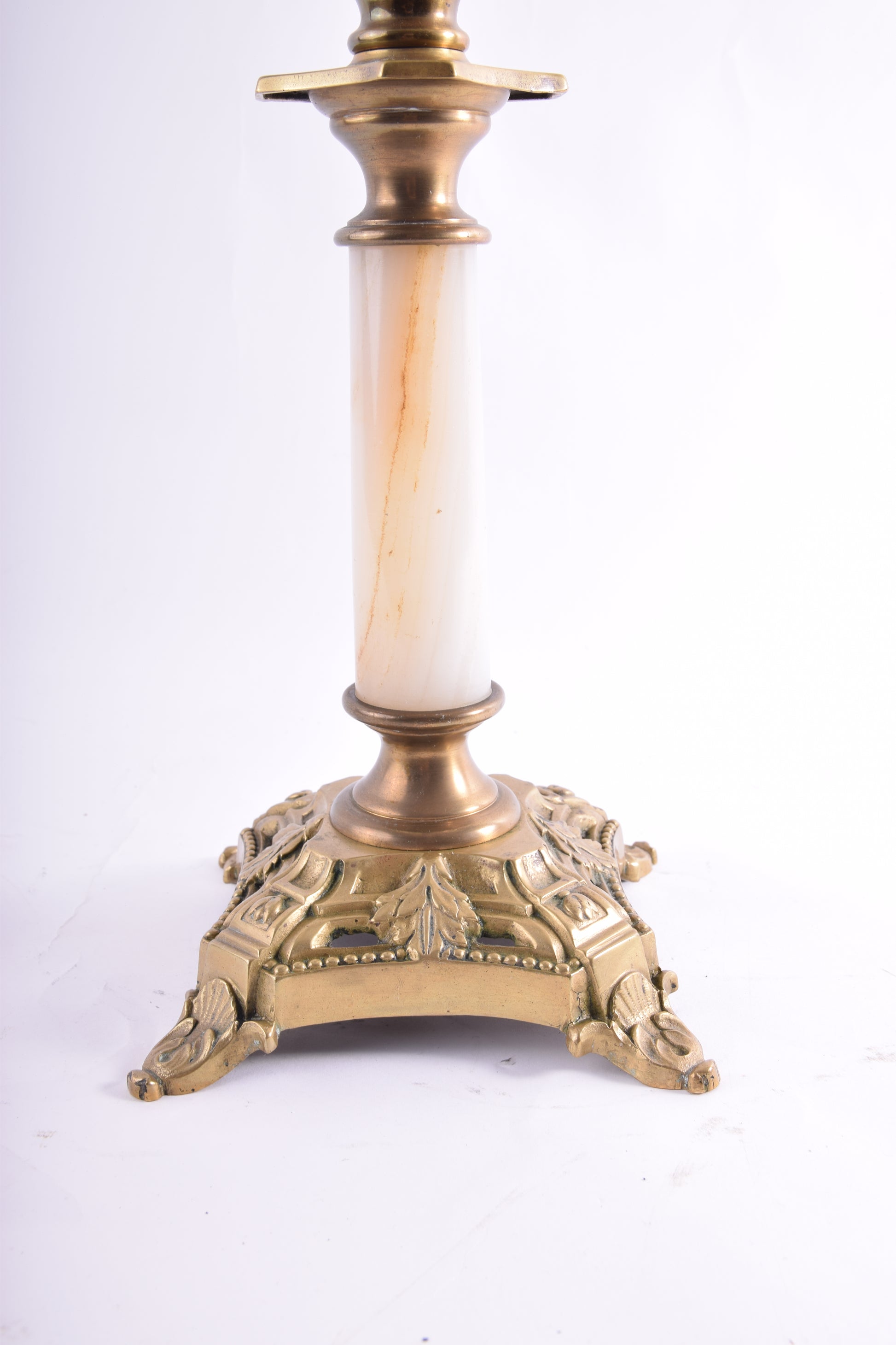 - Solidna podstawa z mosiądzu i marmurowym lub onyksowym trzonem